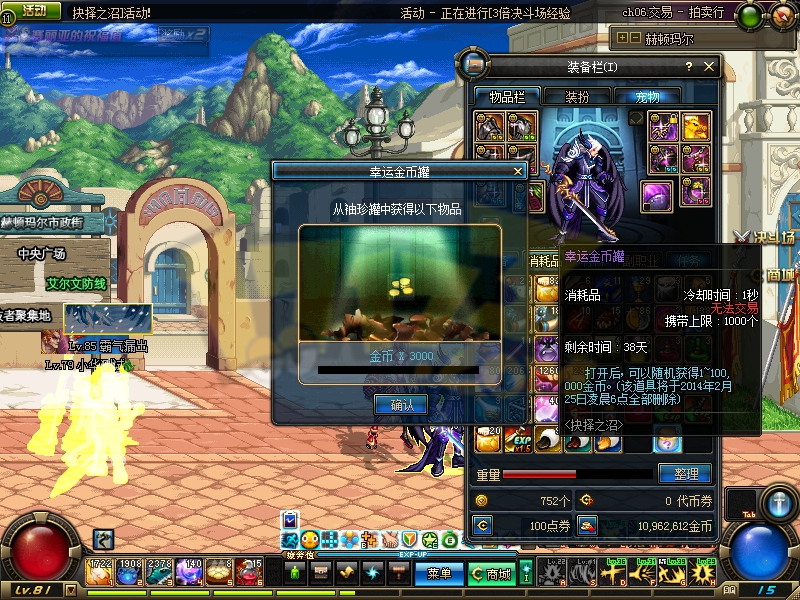 3、本次只掉落“闪亮的金币钱袋”道具,体验服非常容易开出幸运金币罐。
