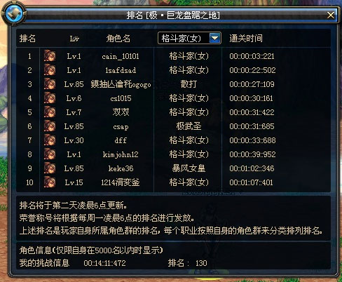 - 通关极·巨龙盘踞之地,会记录通关所消耗的时间与角色的部分信息。