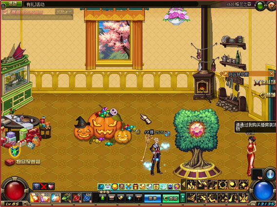 房间里可以装饰房间、种树,相关道具由房间里的NPC云清出售。