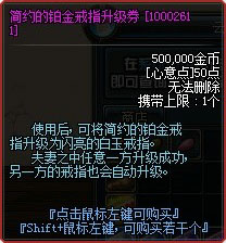 不同阶段的戒指会有不同的buff奖励。 点击查看戒指属性及戒指升级券