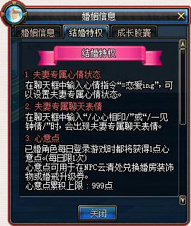 2.开始的时候根据婚礼类型会发放奖励。(物品栏发放方式、空间不足的时候发放邮件)