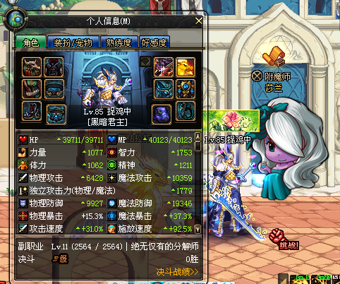 智力1753 魔法攻击10359 独立1779 魔爆37 暗强104