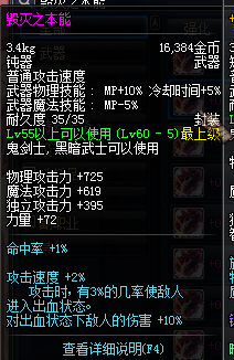 评价:练级过程中的极品武器,但也只是过渡武器,虫钝相比于毁灭,不仅在于无条件附加10%伤害,自带火属性攻击也是相当给力,适用与走火强