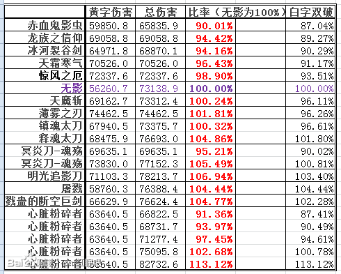 但如果把双破伤害也考虑在内的话,略优于无影的只有释魂太刀、冥炎刀-魂殇、明光追影刀、以及出血情况下的屠戮、戮蛊的断空巨剑,以及怪物HP低于40%时的心脏粉碎者