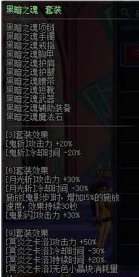 如果最求极限伤害,最好还是散件装备双气息5件。即上下装,头肩,鞋子和腰带。全部双气息鬼步和卡洛加伤害。左槽SS二觉,右槽暗属性强化右槽,配合金手镯,灵魂猎者,艾尔文。戒指可以艾尔文触发效果后换属强戒指。
