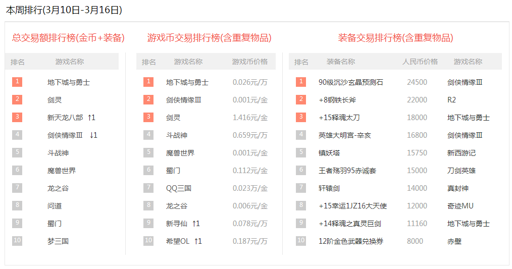 数据来源:5173,出自:腾讯游戏频道。本周排行(3月10日-3月16日):