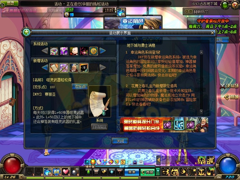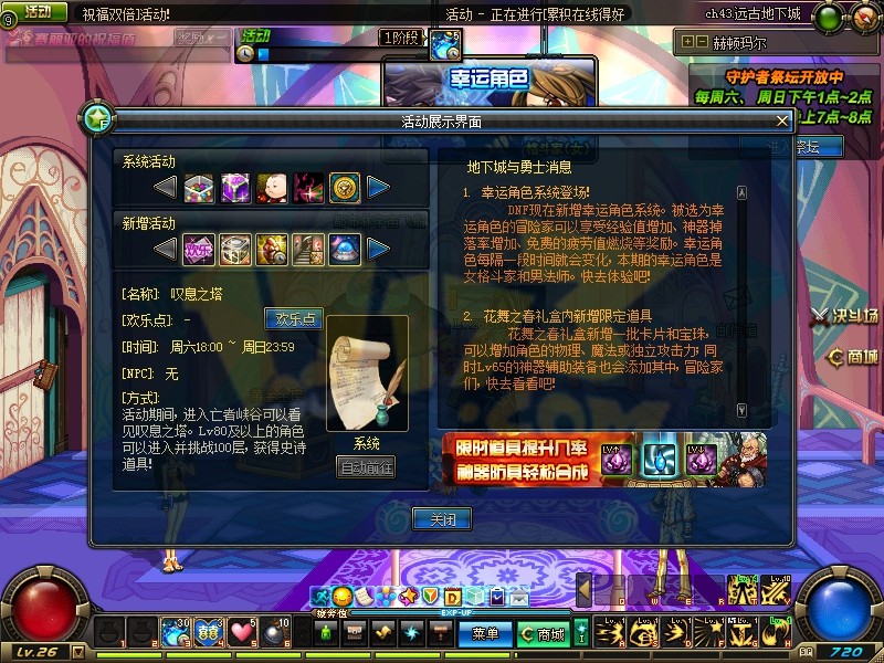 1、DNF叹息之塔上线。
