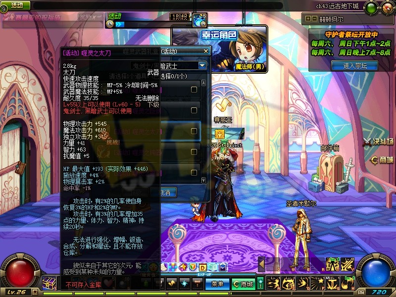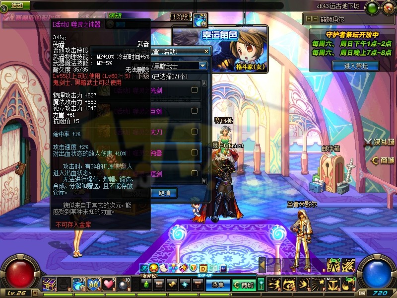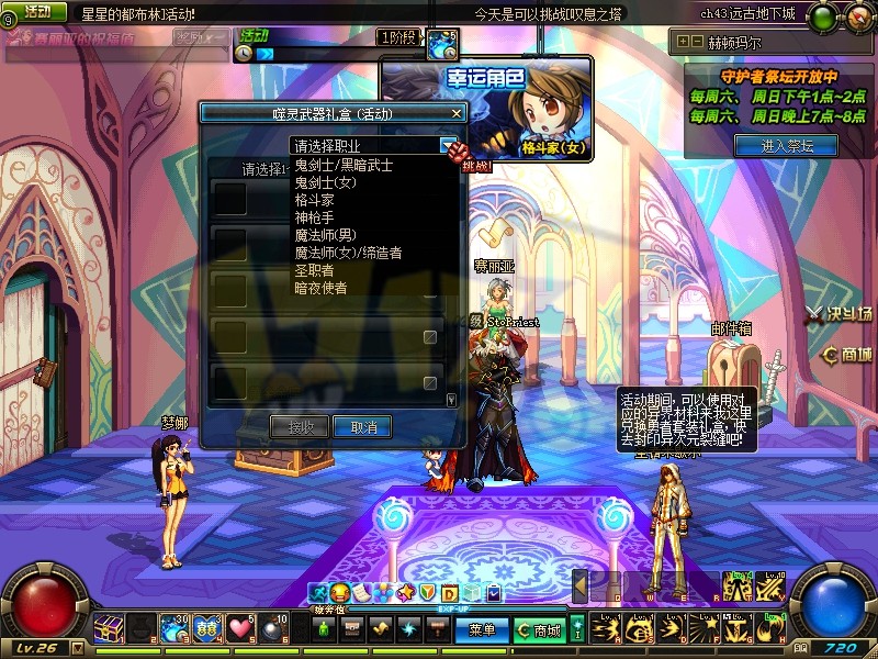 和之前的每日幸运角色一样,每天都会挑选部分大职业变为幸运角色。幸运角色享受经验加成、神器掉率加成和免费疲劳值燃烧等福利。