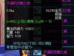 超高智力,最上级直接就是160智力 直接堪比13红字戒指,站街最牛装备之一 价格5-6亿