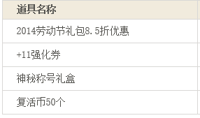 因为4月24日进行的2014劳动节礼包“购礼包送大礼”活动系统存在异常(该异常已通过4月25日凌晨3:00停机维护进行了修复)。部分玩家无法获得正确的赠品,为此给您带来的不便,我们深表歉意。因此受到影响玩家可以通过此页面领取补偿赠品,补偿赠品详细领取规则参照下方表格,感谢各位勇士对DNF的大力支持。