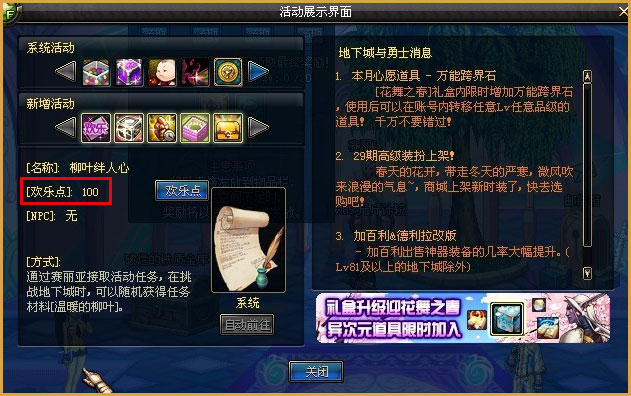 1.点击游戏画面左上角【活动】按钮可以打开活动展示页面。在活动展示页面可以查看指定活动可以获得的最高欢乐点数数量。
