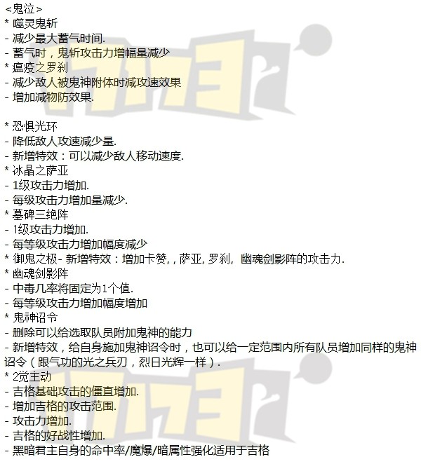 注:本次平衡性改版没有牵涉到黑暗武士和缔造者两个外传职业,敬请留意。