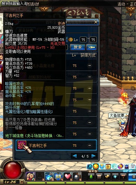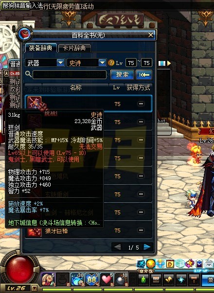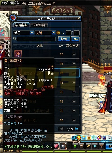 获得方式:75级的史诗左右槽