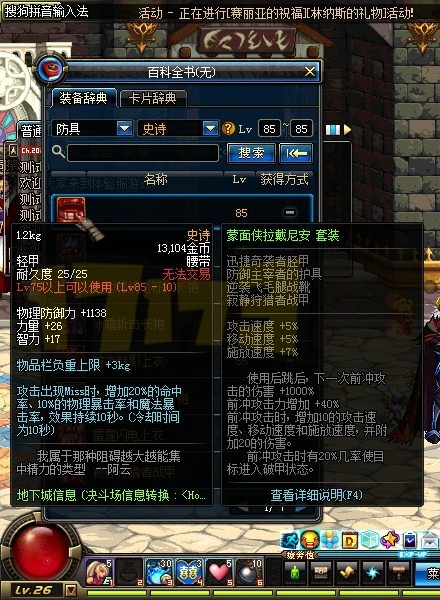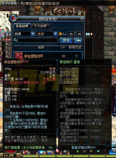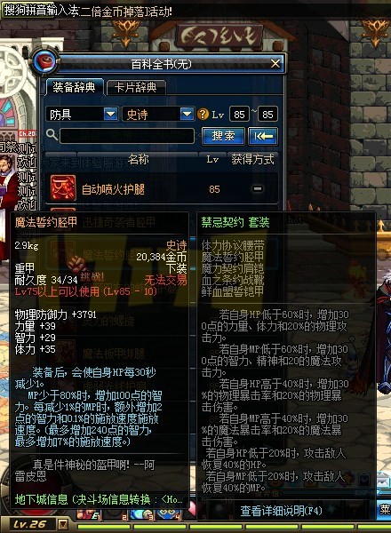 85级的史诗防具: