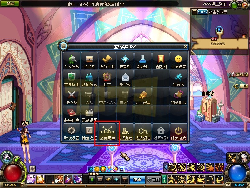 在赛利亚房间的时候可以选择公共频道进入异界地区