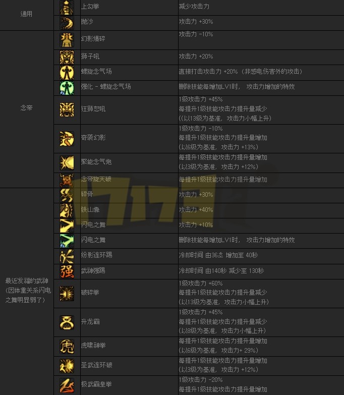 DNF全职业NB1到SB2技能平衡性调整数据整理