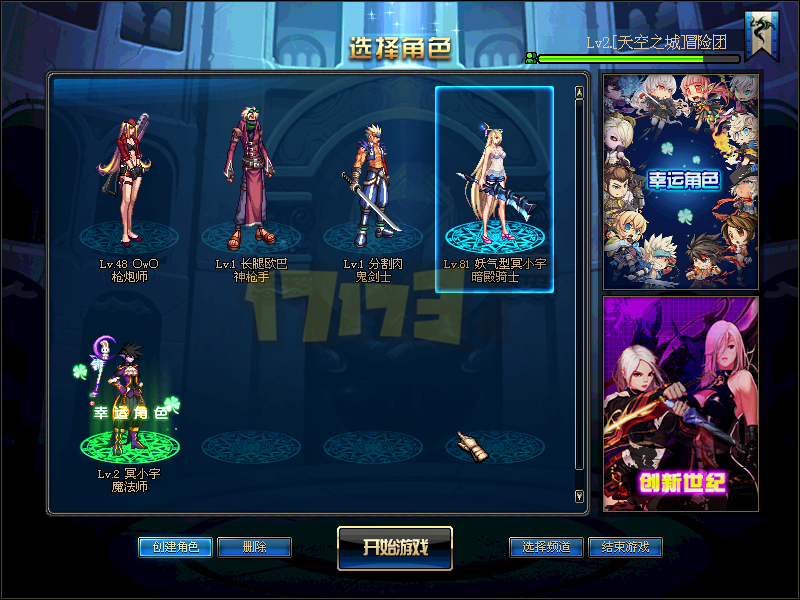 选择角色界面,幸运角色暂无变更,然后右边新增了暗帝剑豪的宣传图