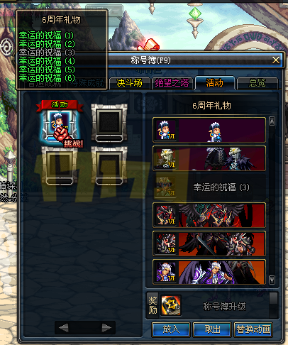 然后呢,六个称号就是天1~天6,当年韩服的六周年称号,国服照搬了,也不修改下……