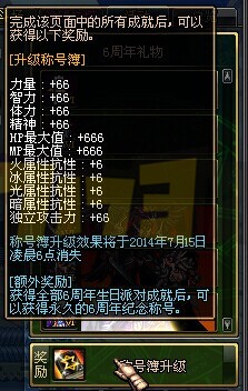 全部完成后送限时buff+永久称号,称号四维惨不忍睹……用来纪念的称号。
