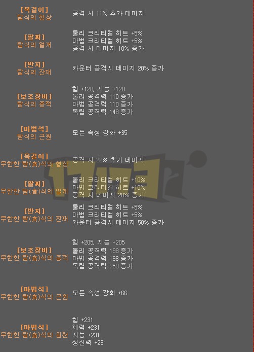 | 黑炎之克雷斯 | 项链,手镯,戒指 | 暗属性强化+18 (最高+20) |