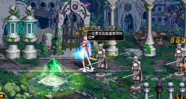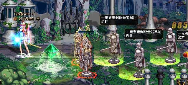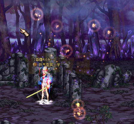 这个地图和前面三个森林的地图有所不同的地方在于地面上的水晶,应该是一些还没成长完的小水晶,踩上去后会发光然后消失。