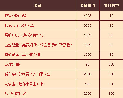 同时,在线的玩家还可以参与抽奖活动,奖励如下: