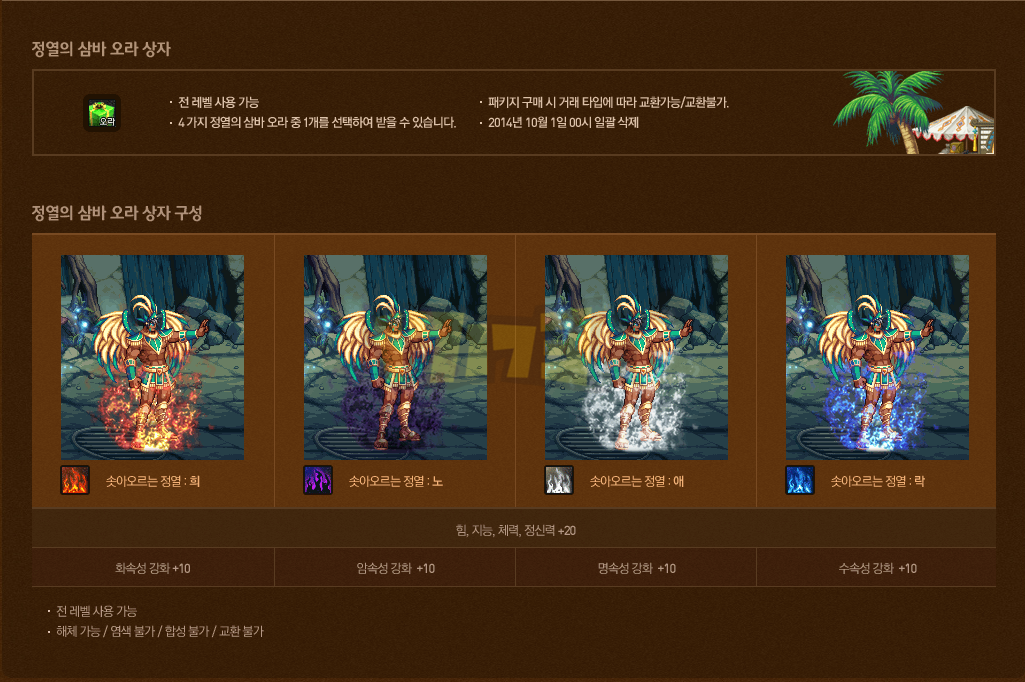 购买第四套时:装备品级调整箱*10/热情的桑巴舞光环礼盒(账号绑定)*1