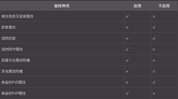这个图的大致意思是,改版后在决斗场适用的只有称号、宠物属性、各装备基础属性及武器的附魔和属性攻击了,其余的徽章和附魔以及假紫、假粉除了属性攻击外的额外属性都不适用了.