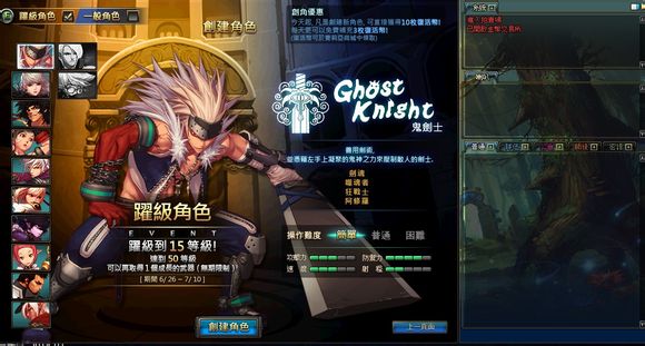 还没更新剑豪和暗帝。 两外传职业已经开放,只是不适用于跃级角色。。