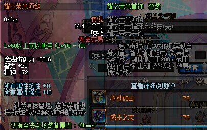 虽然不太适合漫游,但是也还是不错的项链,毕竟悲鸣链子绝版了,在没有魂链的时候,带带这个也还是不错的。