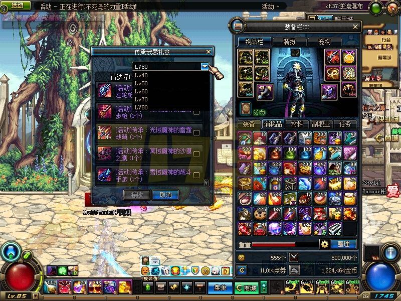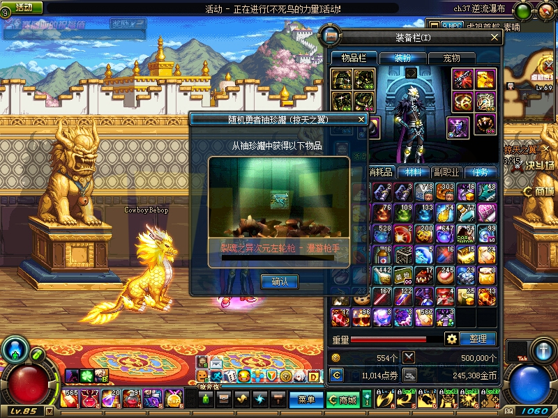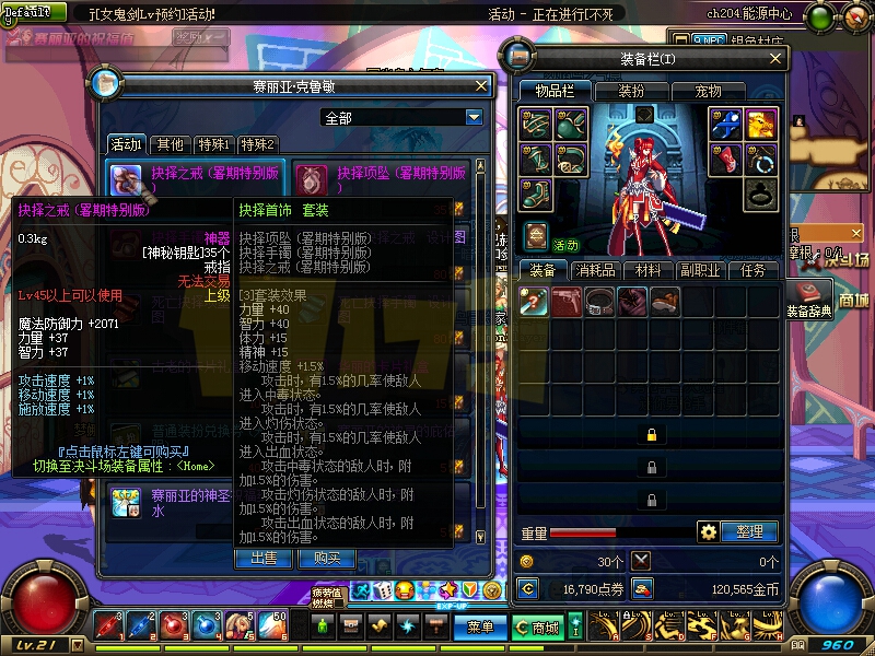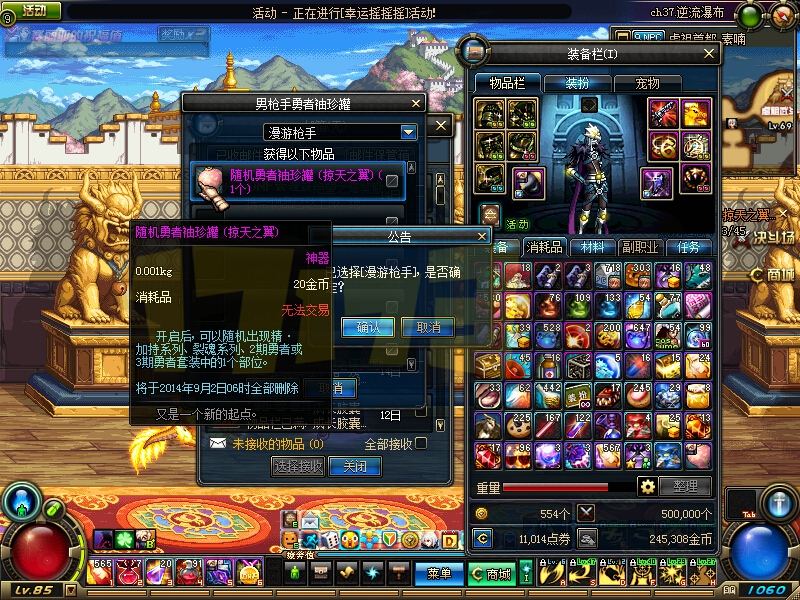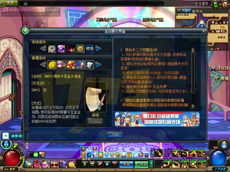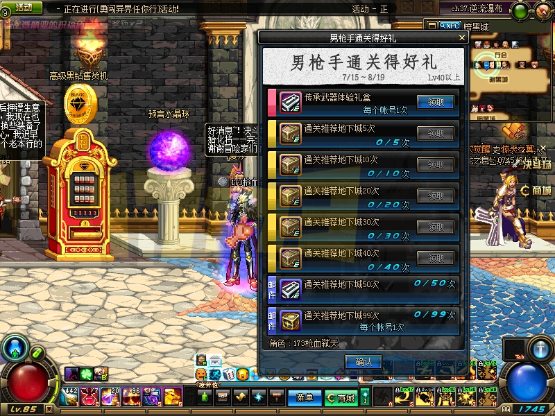 通关推荐地下城即可领取CC装备(仅限男神枪手),99次送异界装备。