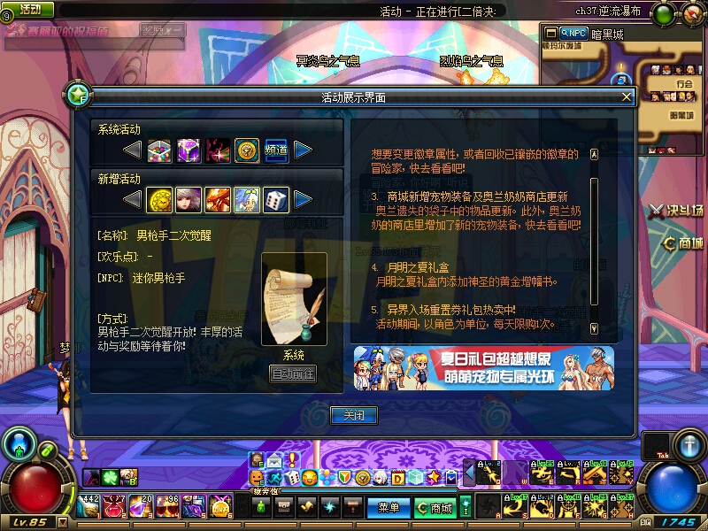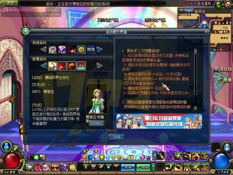 赛利亚处新增迷你酷夏神枪手NPC,点击可查看神枪手专属活动
