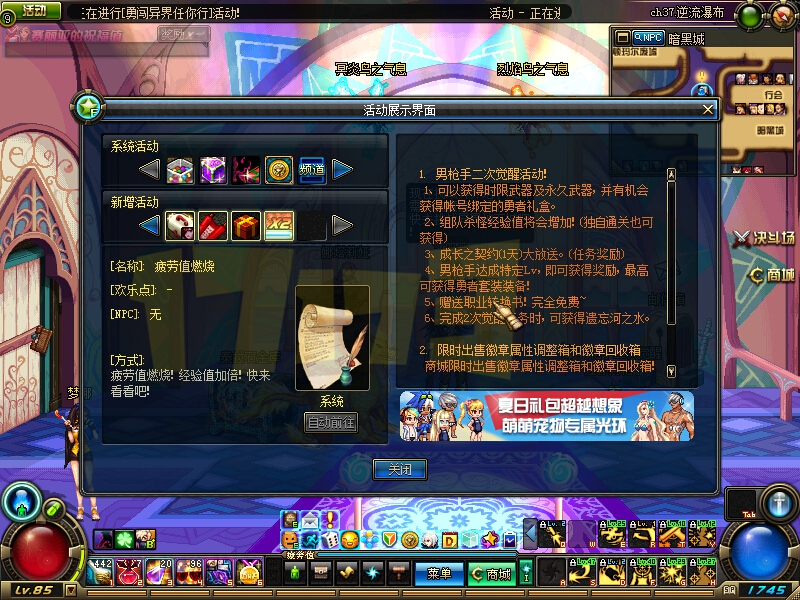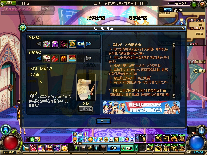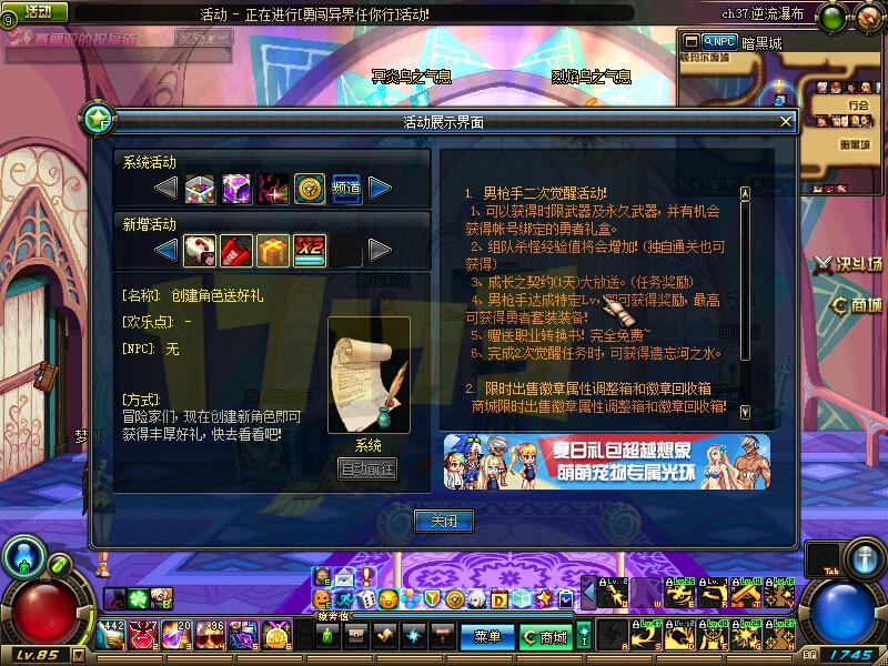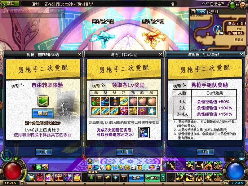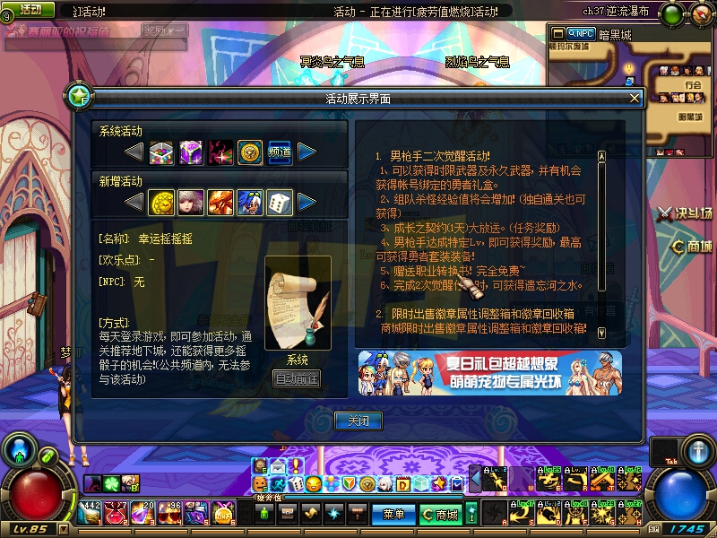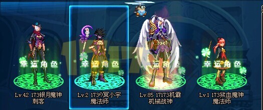幸运角色新增神枪手(男)、魔法师(女),男法师、男格斗、女格斗、暗夜使者幸运角色状态仍在(说不定正式服出的时候就没了)