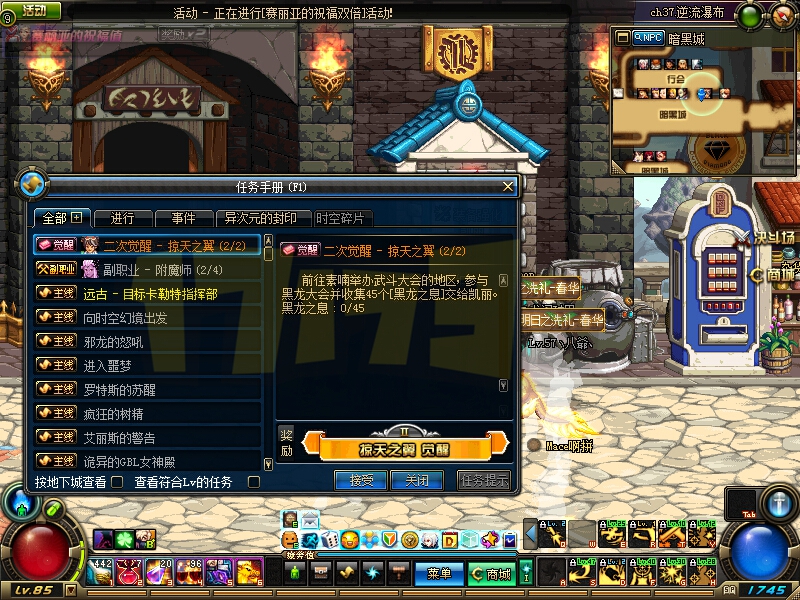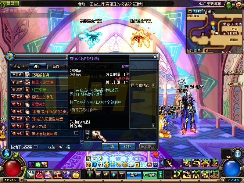 鳗鱼二觉:(由于脸差,最后差2个任务物品才能完成……)