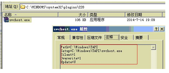 2、追踪病毒文件创建过程,发现可疑的自解压包svchost.exe,此程序自动解压后会自我删除。