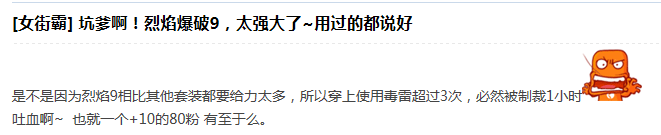 DNF的异界是一个奇大无比的坑,楼主刷了半年终于凑全了烈焰爆破9。但是万万没想到,“啪!啪!啪!”却没想想中的那么美好,穿这套刷图用毒雷遇到怪物数量一个以上的情况就各种掉线。近一周平均每天要被检测4-5次。每次都是1小时的时间不让你刷图。所以其他打算刷这个套装的街霸小盆友们需要斟酌一下。