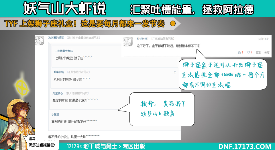 17173DNF专区玩家群:285380731,不定期做群活动送黑钻和QB哦!