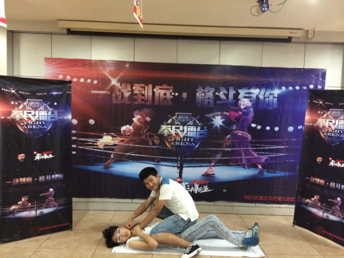 DNF拳民擂台现场擂台争锋自然精彩纷呈,但在另一片擂台上却也有着别样风情。在DNF拳民擂台宣传展板前,参赛选手纷纷驻足留影,用自己炫酷的POSE展示拳民争霸。在这些花样姿势秀中,有的似模似样的摆出了格斗预备姿势,却有啼笑皆非的效果;有的则鬼剑士附体摆出了施咒姿势,中二病严重;有的莫名其妙的摆出了“7”的手势,却有一种独特的风骚韵味;有的则扶起的镜框神秘一笑,与短袖上的双眼交相呼应,令人浮想联翩。