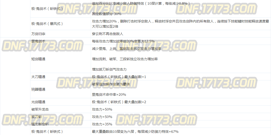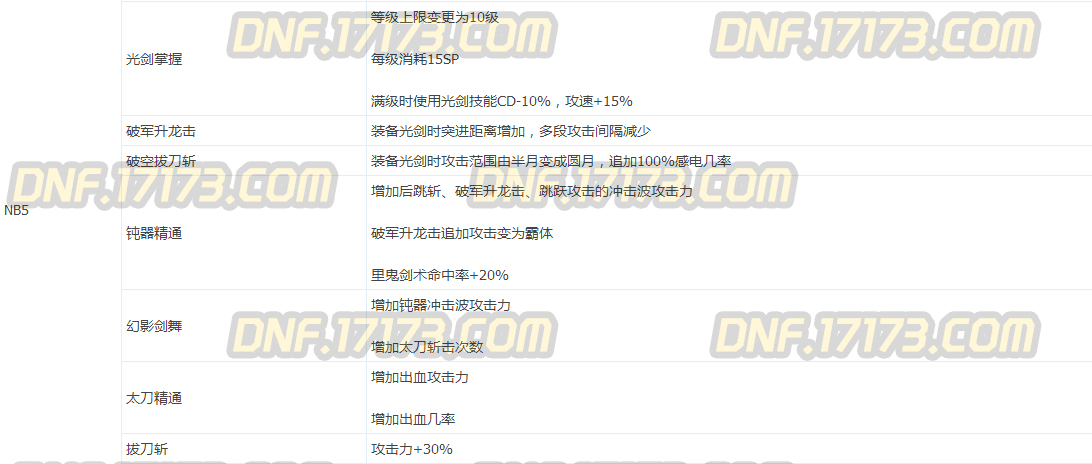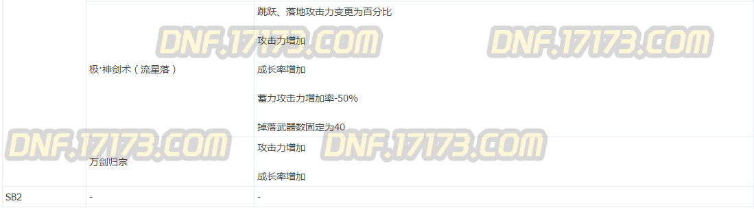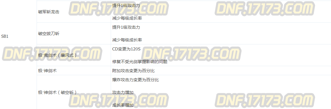 DNF全职业NB1到SB2技能平衡性调整数据整理