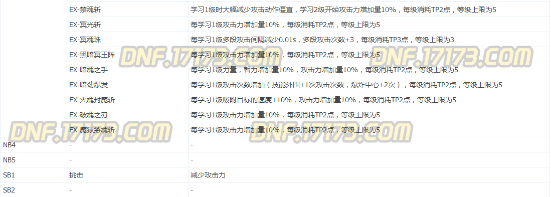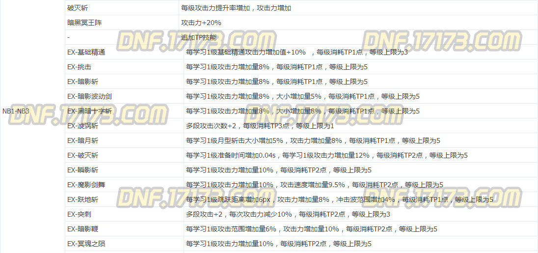 DNF全职业NB1到SB2技能平衡性调整数据整理