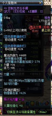 手镯:各种活动的全属强手镯,金镯子,新出的遗迹手镯首选,比金镯子多暴击和力量呢