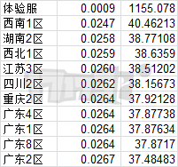 经测试本人执行出的大区如下: