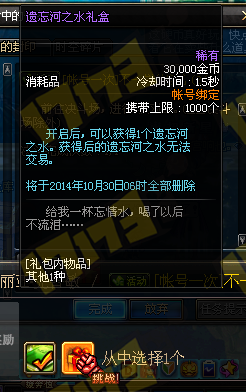 4、遗忘之河水礼盒账号绑定,打开后即可获得河水1个,打开后无法交易。