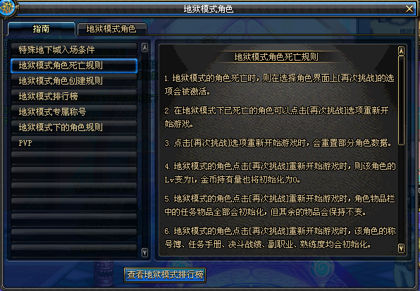 国服地狱模式详细介绍 规则排行称号PVP一览