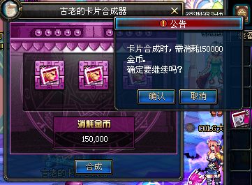 三张卡片合成帐号绑定的宝珠,三张紫卡合成10W,三张粉卡合成15W
