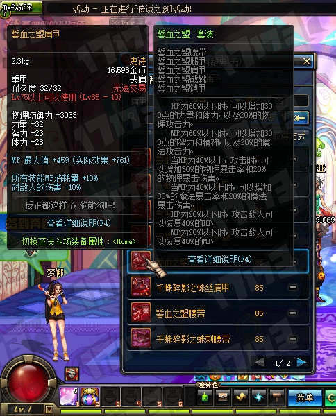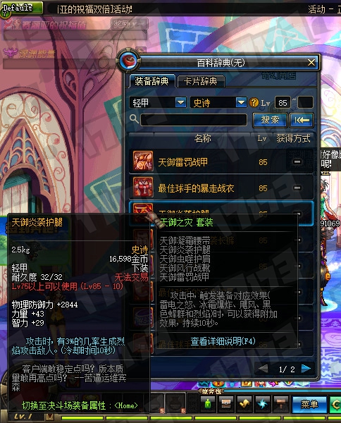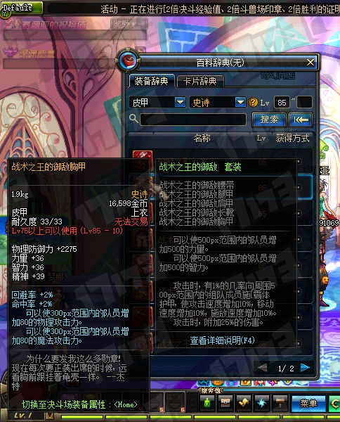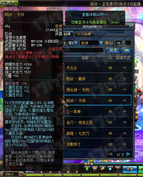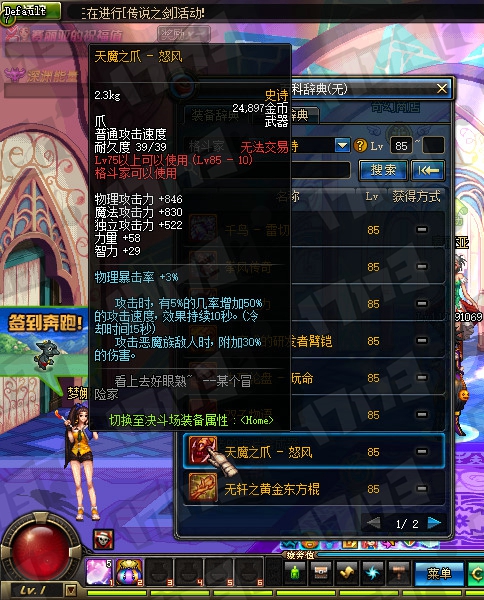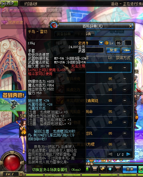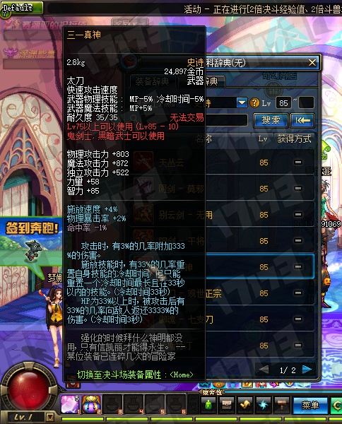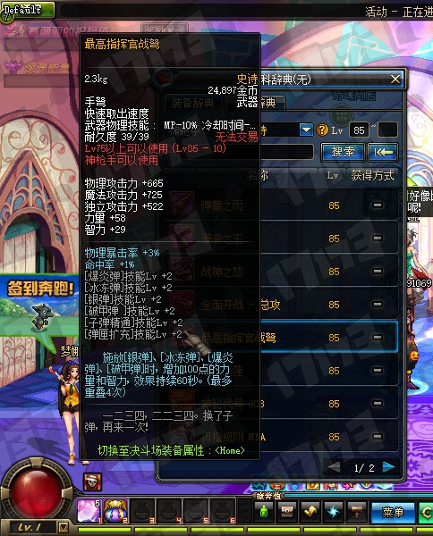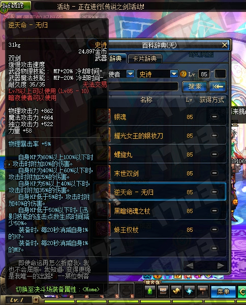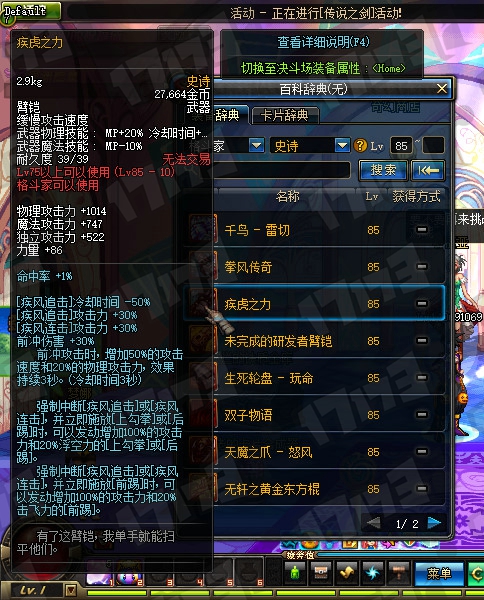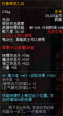 鬼剑士85SS武器属性一览: