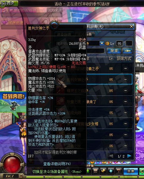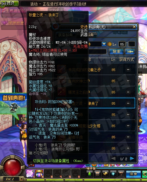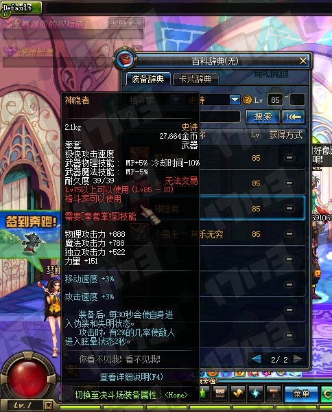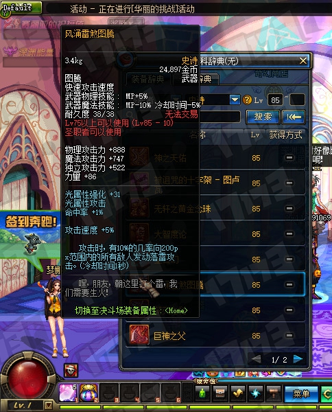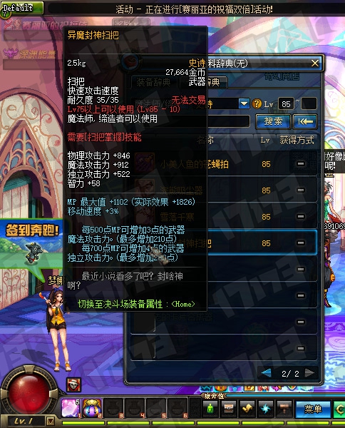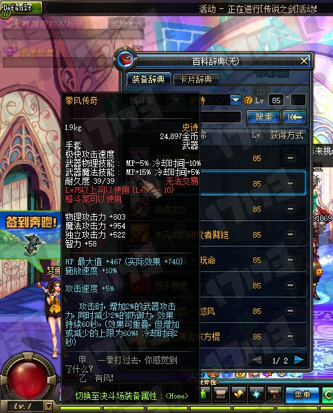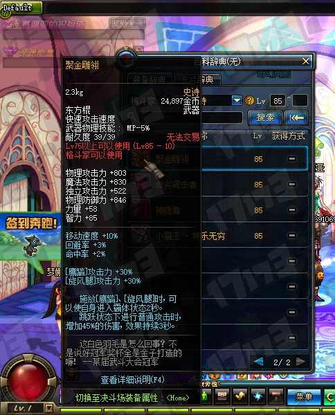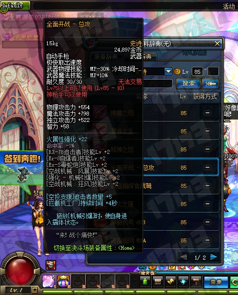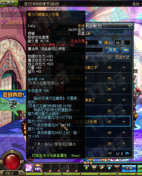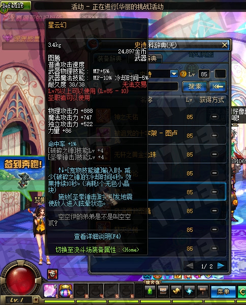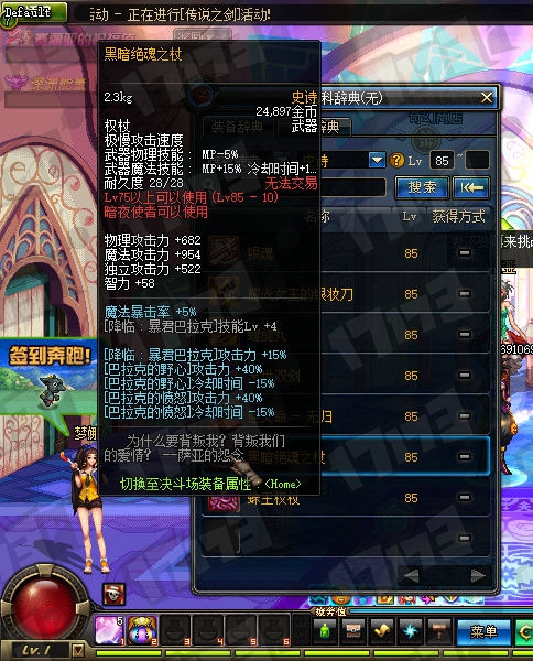 魔法师85SS武器属性一览: