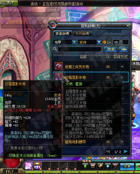 85SS布甲属性一览: