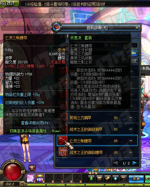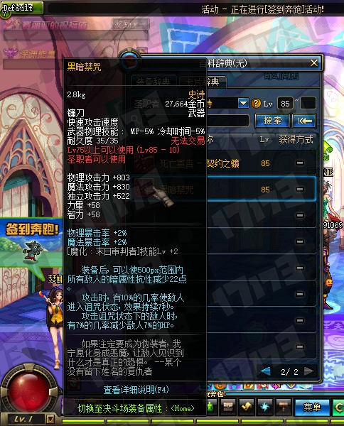 暗夜使者85SS武器属性一览: