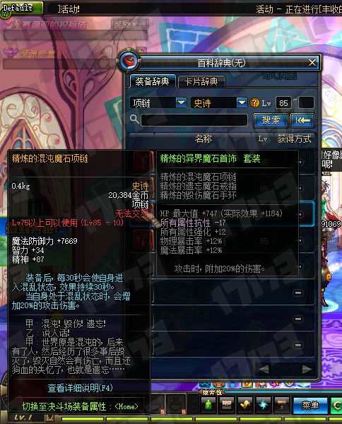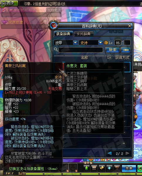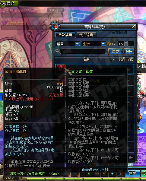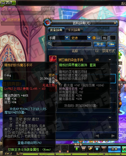 85SS辅助装备、85SS魔法石属性一览: